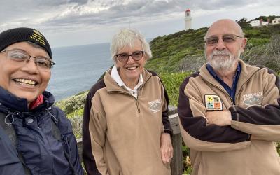 Madhumita Bishnu (left) at Mornington Peninsula National Park in Australia with Rotarian Peter Downes and his wife, Helen.