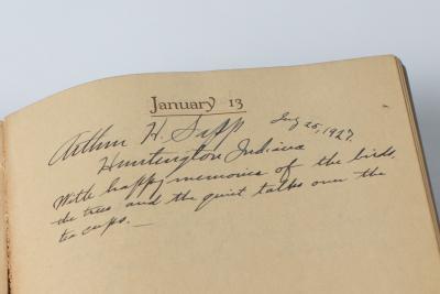 The dates printed on the pages don’t match the actual dates of most of the visits. Instead, it appears that many visitors signed the page with their birthday. Harris himself, a lawyer, used the book to take notes on a few meetings with his clients.