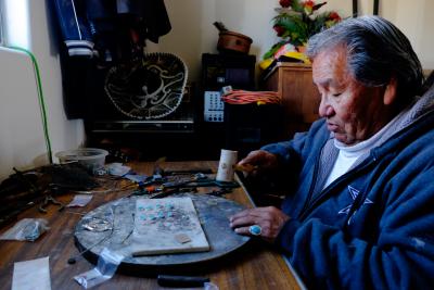 Now he sells his wares when he travels to preach all over the reservation. But with his failing eyesight, it has been getting harder to do the detailed work. After all, it takes a good four days to make a full squash-blossom necklace.