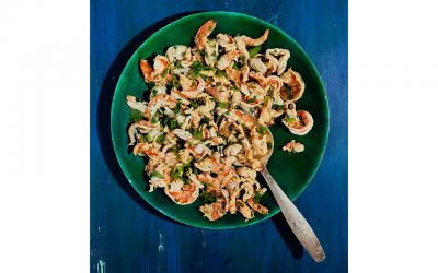 Prawns are ubiquitous in New Caledonia, a French territory in the South Pacific. So an everyday homemade meal for Marie-Claire Gauthier is this ceviche-inspired salad. “It gives a feeling of freshness in summer,” she says.