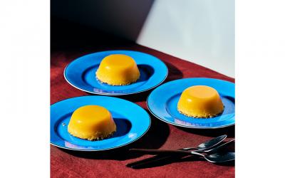 Legend has it that the white garments of Portuguese nuns were starched with egg whites, so sweet confections were the answer to using up the surplus of egg yolks. The Portuguese version of quindim uses almonds, but when the recipe was brought to Brazil, cooks adapted it to include abundantly available coconut instead. “Quindim is one of those desserts that embodies the essence of Brazilian culture: vibrant, joyful, and a mix of influences that come together to create something uniquely beautiful,” Ernesto Neumann says.