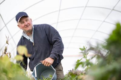 Os túneis possibilitam a Carr ampliar a estação de cultivo começando mais cedo com vegetais como acelga chinesa e tomate.