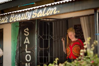 アルファニさんさんとヘレン・ポールさんは、ムソマ市で美容室を共同経営しています。二人は、自分たちがアルビノであっても、客に迷惑はかけていないと信じています。