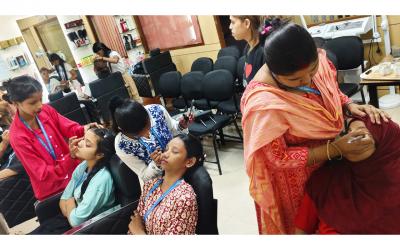 One of the first students to enroll was Disha Santhosh, 17. She grew up in a leprosy settlement in the Dilshad Garden area of Delhi, one of the largest of its kind in India and home to thousands of people affected by leprosy and their family members. Here most households face persistent financial hardship. Her father was affected by leprosy, but he had long been the sole breadwinner, working tirelessly as a plumber to provide for the family. To meet even basic needs, her father had to take out a loan, deepening the family’s financial crisis. But through the training center, Santhosh completed certification in cosmetology in March and is now employed, offering a vital lifeline to support herself and her parents.