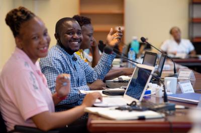 Though pandemic restrictions led to the cancellation of a planned trip to Rwanda, the peace fellows had many opportunities for work in the field, including visiting the Bidi Bidi refugee settlement near Uganda’s border with South Sudan and meeting with survivors of the disastrous landslides in the country’s Bududa district. “These excursions enabled us to have firsthand engagements on peacebuilding and conflict transformation in communities affected by migration and environmental disasters, as well as gender-based violence,” said Baine-Omugisha.