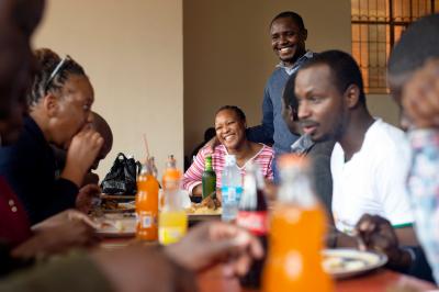 The peace fellows share a meal — and ideas. “They are a support system to each other,” says Nambalirwa Nkabala.