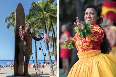 1. A statue of the legendary surfer Duke Kahanamoku; a hula dancer tells a sinuous tale.