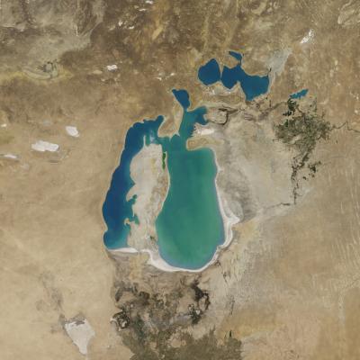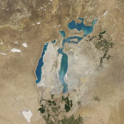 The Aral Sea basin in Central Asia is one such place. Changes in the basin have a far-reaching impact on Kazakhstan, Kyrgyzstan, Tajikistan, Turkmenistan, Uzbekistan, Afghanistan, and Iran. River diversion that began in the 1960s, when much of the region was part of the Soviet Union, has nearly desiccated the inland saltwater lake, once the fourth-largest lake in the world. Today, rusting ships lie beached on a desert contaminated by high salinity, and neighboring countries clash over the limited water resources they once shared.