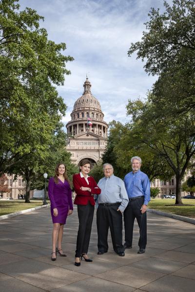Previous page: Austin Rotarians Tillery Castillo (from left), Julia Benkoski, Jack Mayo, and Todd Coleman at the Texas Capitol.