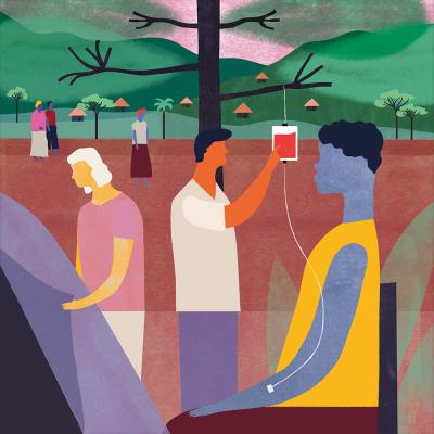 Il suono vigoroso dei tamburi dei Batwa diffondeva il messaggio che l'assistenza sanitaria era disponibile. In genere, le nostre cliniche accoglievano dai 300 ai 500 pazienti al giorno. Il nostro reparto di terapia intensiva è stato allestito all'ombra di un albero. I bambini, semicomatosi per le devastazioni della malaria, si sdraiarono su stuoie mentre le flebo, appese ai rami dell'albero, gocciolavano chinino salvavita nelle loro vene.