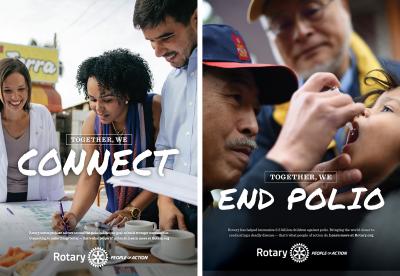 Campaign placement tips are on Rotary.org/brandcenter. There are also other ways to use the materials – consider adding campaign graphics to club and district websites, posting them on social media, and displaying the ads at events.