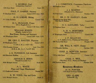 When the Rotary Club of Chicago published this member roster in October 1905, the club had grown to 21 members, including two honorary members.