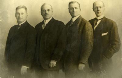The first four Rotarians. From left: Gustavus Loehr, Silvester Schiele, Hiram E. Shorey, Paul P. Harris.
