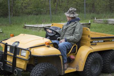 Phil Kinney, president of the camp foundation, comes out a couple of times a week. On a recent Friday in April, he is zipping around in a John Deere Gator. Retired and in his 70s, he’s fearless behind the wheel of the utility vehicle, bouncing over bumps and around corners. He knows every square inch of the camp.