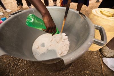 That project also incorporated a two-day training program for the women in each of the five villages. The training began with health and hygiene education, stressing the importance of washing with soap. Then the women received tips on organizing a business, and at the end of the first day they learned the soap-making process. The second day of training focused on marketing and sales.