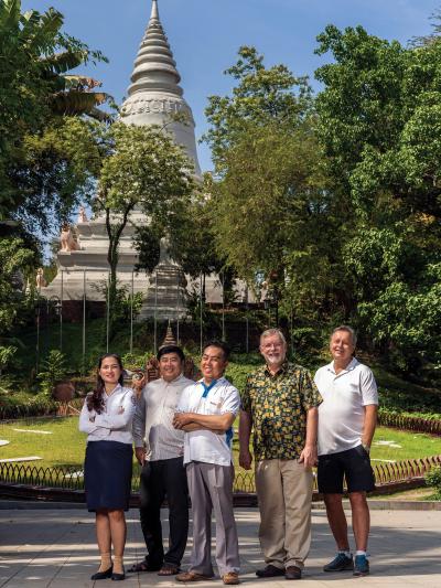 Phnom Penh Metro Rotarians Ratana Ban (from left), Vathana Ban, Ben Betonio, Steve Swartz, and Peter Singer.