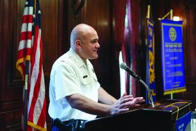 Lt. D.F. Pace speaks to the Rotary Club of Philadelphia. Members encouraged then-Commissioner Charles Ramsey to solicit applications for the peace fellowship.