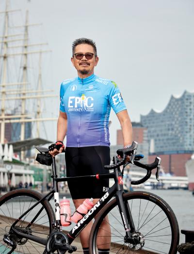 In an effort to raise awareness of diabetes, Velarde, 57, rode a bicycle for the last leg of his trip, cycling 525 miles from London to Hamburg. After making stops along the way to visit Rotary clubs and talk about the impact of diabetes, he arrived on 31 May after 13 days of riding. He spoke to clubs in the United Kingdom, France, Belgium, the Netherlands, and Germany.