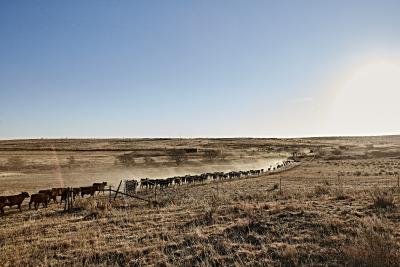 A modern herd enclosed by the wire fencing that helped bring an end to the cattle drives.