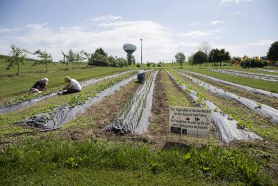 With the goals of alleviating hunger and educating the community, master gardeners from University of Illinois Extension planted the garden in 2001 on a half-acre parcel donated by the city and adjacent to the public library. Over the years, the master gardeners have enlisted the support of many businesses, organizations, and clubs, including the Rotary Club of Harvard, making the project a community-wide effort.