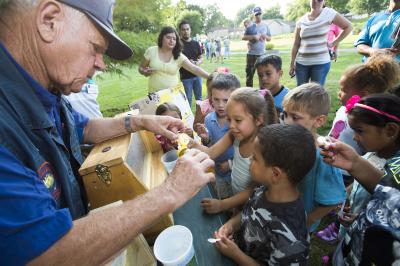 On a sunny morning in July, two dozen preschool children from Brown Bear Daycare inspect a bed of milkweed plants for monarch butterfly eggs, holding magnifying glasses to the underside of leaves in search of the tiny, off-white objects.