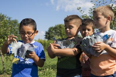 Curiosity stoked, the five-year-olds and their teachers move to the shade of a large tree to listen to a master gardener explain the role these butterflies play in gardens. The preschool class visits the community garden in Harvard, Illinois, USA, every Monday from spring to fall to learn about garden-related topics and even help out.