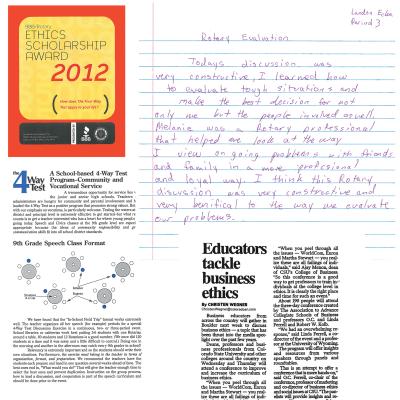 Qualifying participants can use their new knowledge of the test to apply for the Better Business Bureau/Rotary Ethics Scholarships; after participating, students write an evaluation; the program has been adapted for business students in college; the toolkit gives detailed instructions on how to run the program.