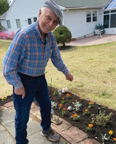 When Judy Gross saw an online ad from someone seeking help with yardwork, members of her Rotary Club of Central Ocean Toms River, New Jersey, were ready to step up. In the ad, local resident Coreen Onnembo-DiLea explained that she was having a hard time keeping up with a garden that brings joy to her 99-year-old father, Achille “Acky” Onnembo, a U.S. Coast Guard veteran who served in the Allied invasion of Normandy in 1944. On a Saturday morning in April, six club members showed up with shovels, mulch, flowers, and stones. “Little did I know I’d hear from a team of superhumans that would handle the entire project,” Onnembo-DiLea wrote in a letter to the club.
