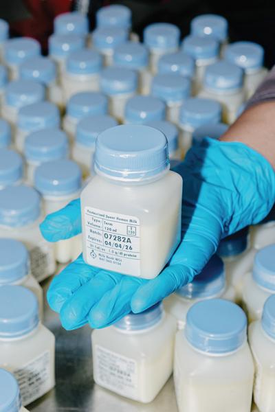 An automated bottling line is used to fill, cap and label each bottle of donor milk.
