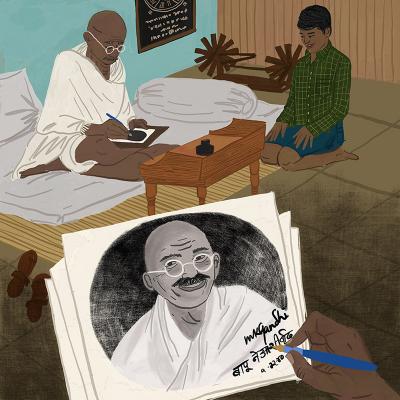 Gandhi smiled and signed the other two photographs, but this time he prefixed his short formal autograph with a special phrase: Bapu Ne Aashirwad. Blessings from Bapu. Father.