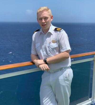 I usually work on the ship for three months, and then I have three months off. That’s why I joined Rotary — when I’m at home, I like to spend my time volunteering. At 24, I’m the youngest person in my club by far, but I really enjoy it. I’ve been attending our meetings from the ship via Zoom. It’s good to see the faces of the other members, and they are always eager to hear my updates. It provides me with a welcome bit of home.