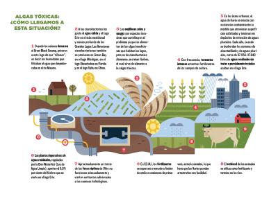Una proliferación de cianobacterias, o algas verdiazules, había envenenado la cuenca occidental del Lago Erie, la fuente de agua potable de Toledo, Ohio. Las algas se habían alimentado del nitrógeno y del fósforo presentes en la escorrentía que las fuertes lluvias habían arrastrado por el Río Maumee, la cuenca más importante de los Grandes Lagos. El Lago Erie es el menos profundo de los Grandes Lagos y por lo tanto el más cálido, creando así las condiciones ideales para la proliferación de las algas tóxicas. El viento y las corrientes transportaron la floración hasta el tubo de aspiración del sistema de abastecimiento de agua para la ciudad. Beber el agua contaminada causa síntomas que van desde fiebre, vómitos y dolores de cabeza hasta insuficiencia hepática y la muerte.