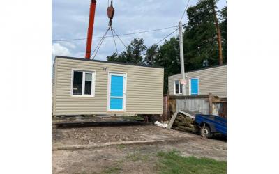 A principios de 2022, las fuerzas rusas destruyeron casi el 85 % de los edificios de Moshchun, localidad situada a unos 33 kilómetros de la capital, Kiev. Distritos rotarios de todo el mundo han donado más de 60 casas prefabricadas a Moshchun y otras comunidades ucranianas. Las casas miden 6 por 7 metros, lo suficientemente pequeñas como para ser izadas con una grúa. Cuentan con refrigeradores, camas y baños con inodoros y duchas. También están completamente aisladas y disponen de paneles de calefacción eléctrica.