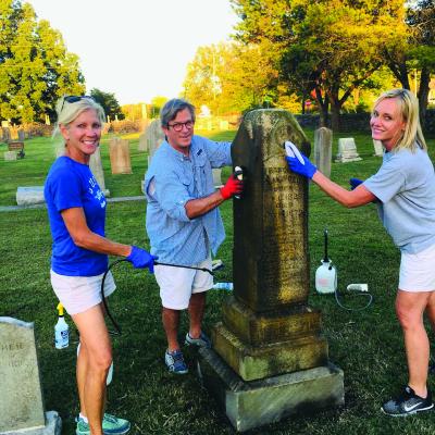 Mientras corría el fin de semana del Día de los Caídos de 2020, Patrick Shairs descubrió un lugar apropiado para descansar: el antiguo cementerio de la ciudad de Franklin, Tennessee. Shairs, socio del Club Rotario de Downtown Franklin, se mostró consternado por la multitud de lápidas con grandes manchas o prácticamente ilegibles. Ese otoño, el club lanzó un proyecto para restaurar varios cementerios históricos de la zona. Aproximadamente un año después, 127 voluntarios, entre los que se encontraban socios de otros clubes rotarios de la zona y estudiantes de escuelas locales, habían limpiado 560 lápidas y 140 pilares, utilizando cepillos y botellas de una solución biológica recomendada por una organización dedicada a la conservación del patrimonio histórico. En un cementerio, los voluntarios identificaron a 81 personas enterradas que no figuraban en el registro oficial de entierros de la ciudad, algo que habría quedado sin descubrir de no ser por sus esfuerzos.