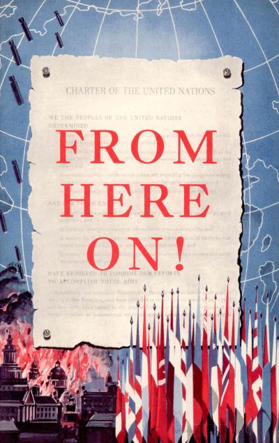Après la création de l’ONU, le livret « From Here On! » de 95 pages reproduisit le texte exact de la Charte des Nations unies, imprimé sur le côté gauche de chaque page tandis que, sur la page de droite, des annotations et des questions permettaient de stimuler la discussion. Grâce à cette présentation, les Rotariens pouvaient utiliser ce document à titre informatif et dans les discussions de club.