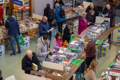 Une vente annuelle de livres, de puzzles et d'autres articles d'occasion témoigne des prouesses du Rotary club de Venlo-Maas en Peel en matière de levée de fonds. Pendant trois jours en janvier, des milliers de rats de bibliothèque ont acheté pour 75 000 euros de livres, une somme record versée à la fondation caritative du club, explique Peter Elbers, gouverneur élu du district 1550. Environ 140 Rotariens et autres bénévoles ont participé à la foire, créée par le club il y a 36 ans. Cette manifestation est l'aboutissement d'une année de travail, les Rotariens triant et catégorisant environ 450 000 livres chaque année dans un entrepôt offert par un membre du club, explique M. Elbers. Les livres invendus sont broyés pour être recyclés. « Certaines personnes viennent chaque année acheter quelques sacs remplis de livres et les rendent en cadeau un an plus tard, explique Mme Elbers, puis, bien sûr, achètent à nouveau de nouveaux livres – une bonne façon de mettre en place une circulation respectueuse de l'environnement. »