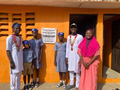 Six membres du club Rotaract de Gbagada, basé à Lagos, ont passé de nombreuses semaines à nettoyer et rénover en profondeur les toilettes de l'école primaire apostolique de Ketu. Utilisant environ 1 000 dollars de donateurs individuels, les Rotaractiens ont remplacé une partie du toit et deux portes, nettoyé le sol, peint, entrepris des réparations de maçonnerie et embauché un plombier pour relier le bloc de six toilettes délabré à un puits existant. « Les toilettes étaient dans un état sale et déplorable », explique Michael Ekerin, président sortant du club. Cela accentue l'absentéisme dans cette école de 500 élèves en raison de maladies telles que la diarrhée et le choléra. L'action, terminée en mars, faisait partie des 20 actions du club en 2022/2023.