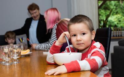 Krystyna Wilczynska Ciemega (deuxième à partir de la gauche), membre du Rotary club de Pulawy (Pologne), accueille chez elle deux mères ukrainiennes et leurs enfants.