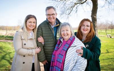 娘のサラ・ウォーデルさん(左)、レベッカ・マッキナリーさんと。イェットホルムにて。