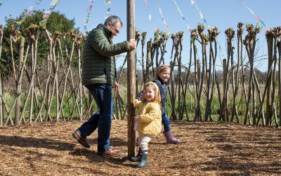 孫娘のフローレンスちゃん(真中)、アイビーちゃんと一緒に遊ぶゴードンさん。イースト・ロージアンにて。