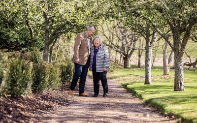 ロックスバラシャーで散歩をするマッキナリー夫妻。