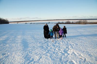 子どもたちとカナダの国民的娯楽であるアイススケートに興じる会員のアン・シャープさん。