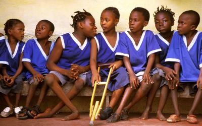 A: 한 무리의 아이들이 장애 아동을 위한 집에 함께 앉아 있는 사진이 있습니다. 시에라리온에서 찍은 사진인데 그 모습을 특히 좋아하죠. 그냥 천진난만한 아이들이예요.