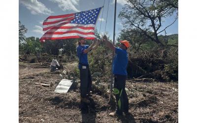 Mas Agee, trabalhando ao lado de seu filho, Adam, e de sua filha, Vanessa, encontrou o mastro daquele sobrevivente desolado e o colocou de volta no seu terreno. Por ser veterano, Agee sempre carrega uma bandeira em sua caminhonete. Ele e Adam a hastearam no mastro enquanto o homem observava. “Aquilo era importante para ele”, disse Agee. “Foi o primeiro dia de sua recuperação.”