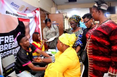 A Nigéria tem uma das maiores taxas de mortalidade por câncer de mama do mundo, uma estatística que não passou despercebida pelo Rotary Club de Ikoyi. “Com um aumento incrivelmente assustador da incidência de câncer de mama na Nigéria, o clube assumiu a enorme responsabilidade de combater esse flagelo com todos os recursos disponíveis”, diz a associada Winifred Ebiye Imbasi. O clube fez parceria com a Fundação Sarah Ayoka Oduwaiye para realizar exames gratuitos de câncer de mama para mais de 500 mulheres no Hospital Geral da Ilha de Lagos, em julho de 2023, e para 400 mulheres no bairro de Obalende, em dezembro. Em janeiro, o clube realizou o concerto Jazz Nite e uma cerimônia de premiação no teatro Alliance Française para aumentar a conscientização sobre o assunto.