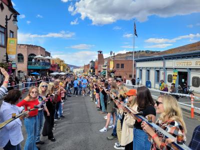 Os Rotary Clubs nas cidades de Park City, em Utah, e Breckenridge, no estado do Colorado, famosas pela prática de esqui, têm uma rivalidade amigável pelo maior shot ski – que é um torneio com copos afixados a um esqui que as pessoas levantam juntas para beber uísque ao mesmo tempo. Em outubro, o Rotary Club de Park City Sunrise reconquistou o troféu quando 1.363 pessoas fizeram fila na rua para beber uísque de centeio (ou cidra de maçã) simultaneamente, por meio de centenas de esquis conectados de ponta a ponta. A rotariana Connie Nelson informou que desta vez o shot ski arrecadou mais de US$ 43 mil para organizações comunitárias, acrescentando que ela e seu amigo de clube, Mike Luers, foram inspirados pelo clube do Colorado a fazer algo do tipo durante uma viagem investigativa dos resorts de inverno mais bem-sucedidos. “A rua principal estava fechada para um festival. O Mike e eu olhamos um para o outro e dissemos: ‘Nós podemos fazer melhor do que isto’”. O evento é uma excelente ferramenta de branding do nosso Rotary Club”, acrescenta Connie. “Não apenas esgotamos os ingressos, como há pessoas na lista de espera para participar. Não se trata somente de consumir o álcool. Tem mais a ver com o aspecto social, de compartilhar algo especial dentro do espírito comunitário.”