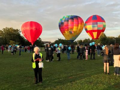 Associados do Rotary Club de Waikato Sunrise estão voando alto graças a um festival anual de balões de ar quente, por meio do qual arrecadam fundos e promovem o Rotary à comunidade. O evento Balloons Over Waikato de 2025, previsto para acontecer de 18 a 22 de março em Hamilton, cidade onde o clube está localizado, contará com cerca de 24 balões, além de fogos de artifício, música, parque de diversão e praça de alimentação, diz Willemien Wennekers, associado do clube e ex-gerente das festividades. Os rotarianos servem como embaixadores junto ao público e ajudam a equipe do balcão de informações e da área VIP. Eles também vendem mercadorias e montam um balão inflado que fica ancorado ao longo do gramado, permitindo que os visitantes passem por dentro dele, diz Wennekers. Os US$ 5.800 arrecadados pelo clube durante o evento de 2024 foram doados ao True Colours Children's Health Trust, um dos parceiros filantrópicos do evento.