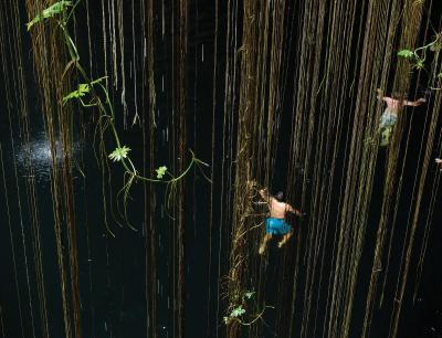 McCurry: esta imagem aqui consegue conjurar tanta mágica que chega a ser surreal. Não dá para saber exatamente o que está acontecendo. As pessoas estão flutuando sobre a água? Ou será que elas estão caindo? Elas parecem pequenas demais em comparação com os cipós. Tudo é muito desconexo ao olharmos pela primeira vez, e esta sensação de ambiguidade e mistério conferem uma qualidade única ao trabalho.