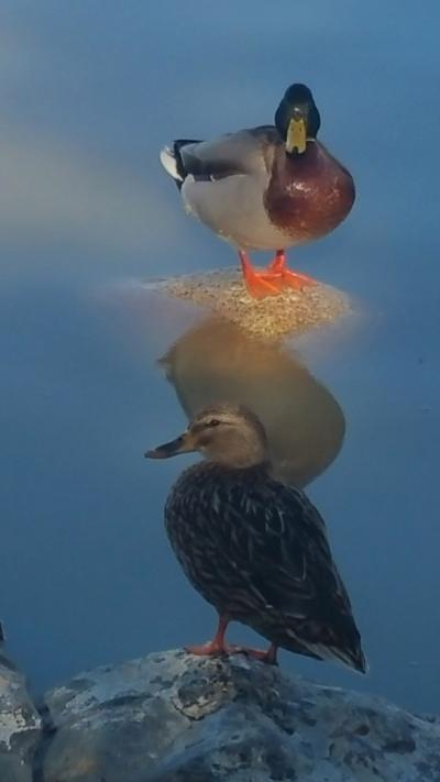 McCurry: esta composição está ótima, nos dando a impressão de um pato sobre o outro. A cor nao podia ser mais perfeita, com destaque ao laranja dos pés da ave. O apelo visual, o pato, seu reflexo, e o outro pato, simplesmente tudo está funcionando muito bem.