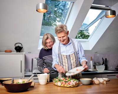 Holger e Susanne adoram cozinhar para eles e seus amigos. Na foto maior, eles preparam uma refeição na cozinha da irmã de Holger.